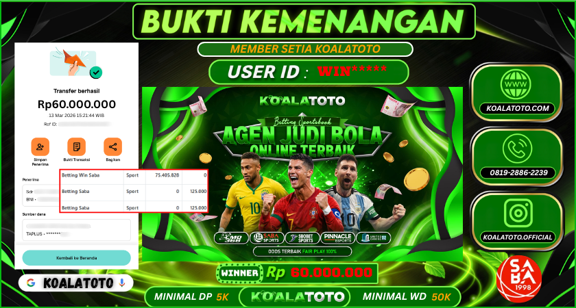 Selamat kepada USER ID : Tom**** || Telah berhasil mendapatkan kemenangan pada Pasaran TOGEL PCSO Pihak KOALATOTO Mengucapkan Terima Kasih Kepada Pemenang karena Sudah Mempercayakan KOALATOTO sebagai Platform Situs Bandar Togel Online dan Slot Online Terpercaya & Terbesar yang Membayar Kemenangan Member berapapun itu tanpa ribet sampai LUNAS !!! Setelah mengisi FORMULIR WITHDRAW pihak KOALATOTO membutuhkan waktu sekitar 1-3 MENIT Untuk memproseskan Kemenangan Kalian Kami menegaskan bahwa KOALATOTO bukanlah Bandar Kaleng-Kaleng. Kami meyakinkan bahwa semua kemenangan akan dibayarkan Bergabunglah dengan KOALATOTO sekarang dan dapatkan kesempatan memenangkan Jackpot besar hanya di KOALATOTO !!!