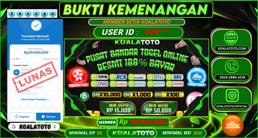KOALATOTO JACKPOT TOGEL PCSO || Rp.15.000.000.,- DI BAYAR LUNAS !!!