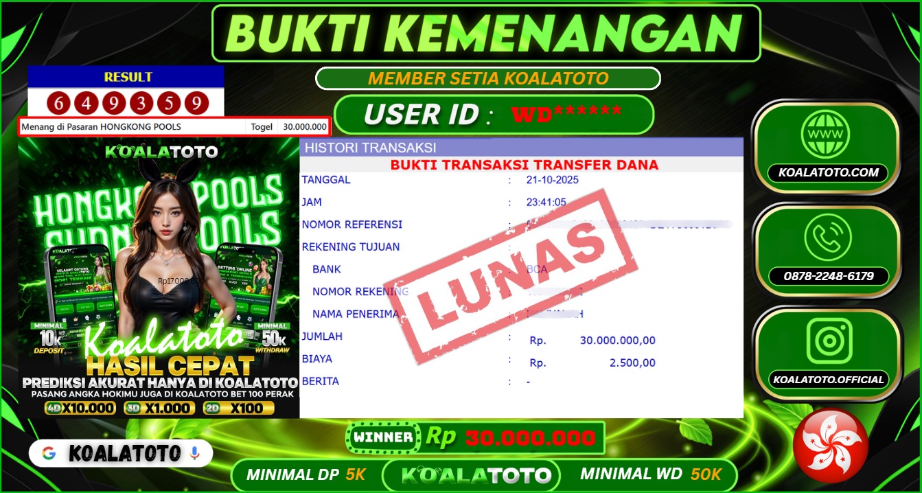 KOALATOTO JACKPOT TOGEL HONGKONG POOLS || Rp.30.000.000.,- DI BAYAR LUNAS !!!