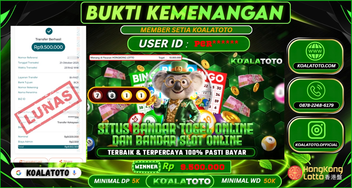KOALATOTO JACKPOT TOGEL HONGKONG LOTTO || Rp.9.500.000.,- DI BAYAR LUNAS !!!