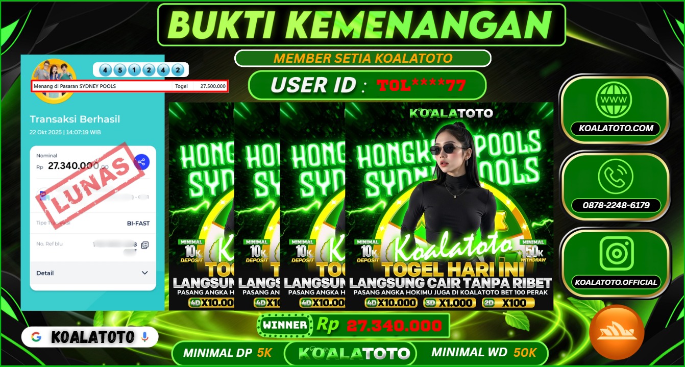 KOALATOTO JACKPOT TOGEL SYDNEY POOLS || Rp.27.340.000.,- DI BAYAR LUNAS !!!