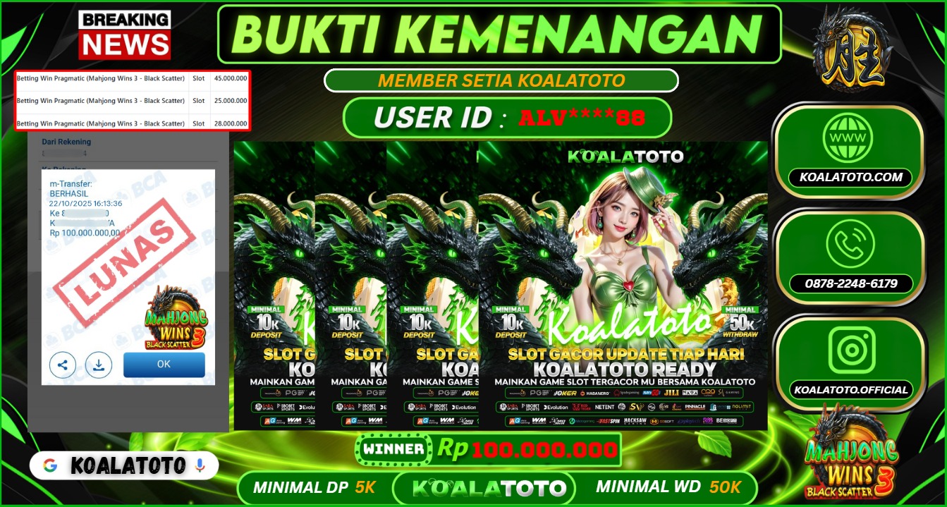 Selamat kepada USER ID : ALV*****88 || Telah berhasil mendapatkan kemenangan pada Game SLOT MAHJONG WINS-3 BLACK SCATTER Pihak KOALATOTO Mengucapkan Terima Kasih Kepada Pemenang karena Sudah Mempercayakan KOALATOTO sebagai Platform Situs Bandar Togel Online dan Slot Online Terpercaya & Terbesar yang Membayar Kemenangan Member berapapun itu tanpa ribet sampai LUNAS !!! Setelah mengisi FORMULIR WITHDRAW pihak KOALATOTO membutuhkan waktu sekitar 1-3 MENIT Untuk memproseskan Kemenangan Kalian Kami menegaskan bahwa KOALATOTO bukanlah Bandar Kaleng-Kaleng. Kami meyakinkan bahwa semua kemenangan akan dibayarkan Bergabunglah dengan KOALATOTO sekarang dan dapatkan kesempatan memenangkan Jackpot besar hanya di KOALATOTO !!!