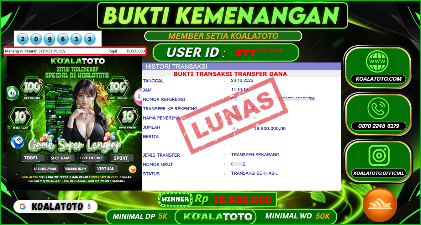 KOALATOTO JACKPOT TOGEL SYDNEY POOLS || Rp.18.500.000.,- DI BAYAR LUNAS !!!