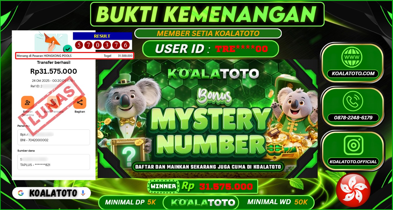 KOALATOTO JACKPOT TOGEL HONGKONG POOLS || Rp.31.575.000.,- DI BAYAR LUNAS !!!
