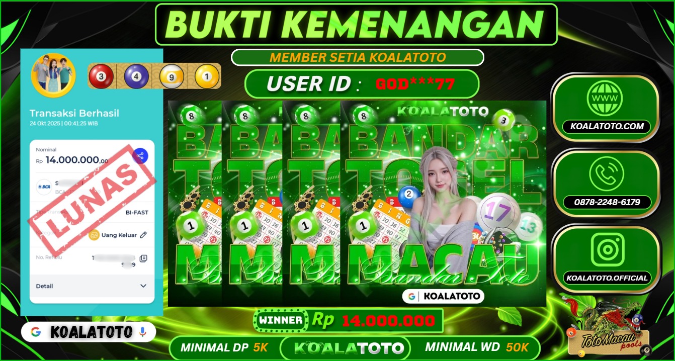 KOALATOTO JACKPOT TOGEL TOTO MACAU 00 || Rp.14.000.000.,- DI BAYAR LUNAS !!!