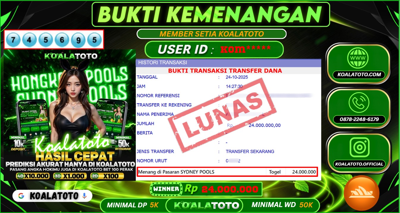 KOALATOTO JACKPOT TOGEL SYDNEY POOLS || Rp.24.000.000.,- DI BAYAR LUNAS !!!