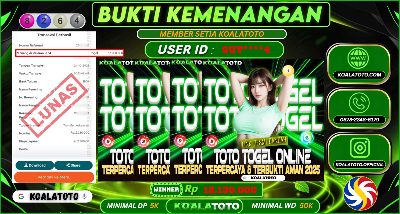 KOALATOTO JACKPOT TOGEL PCSO || Rp.12.130.000.,- DI BAYAR LUNAS !!!
