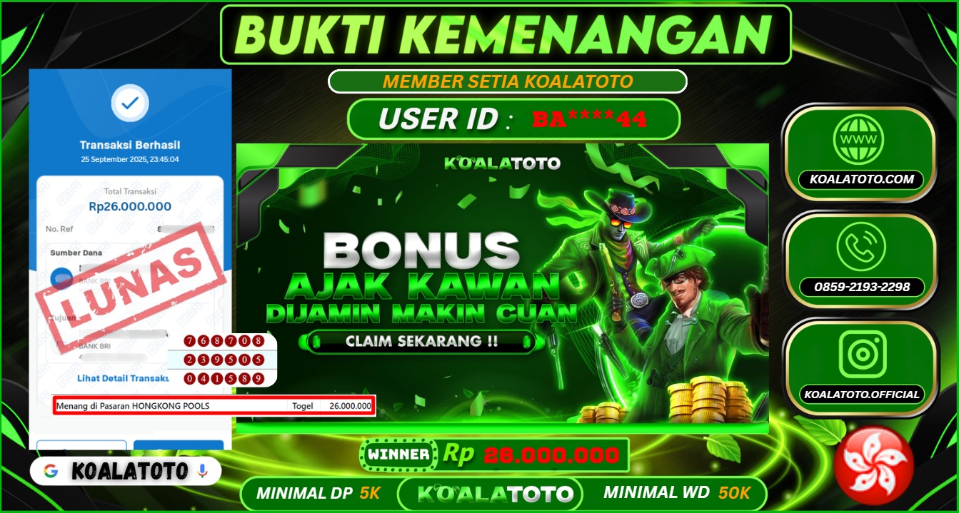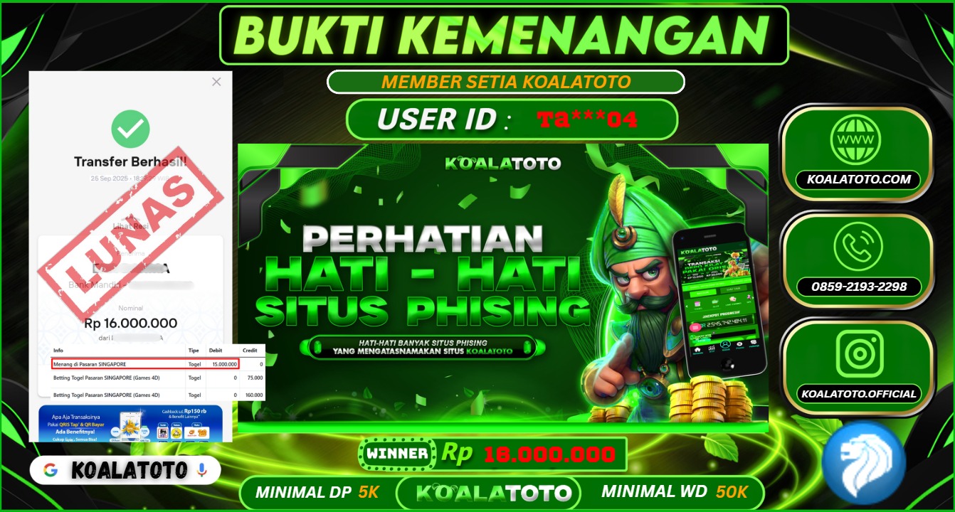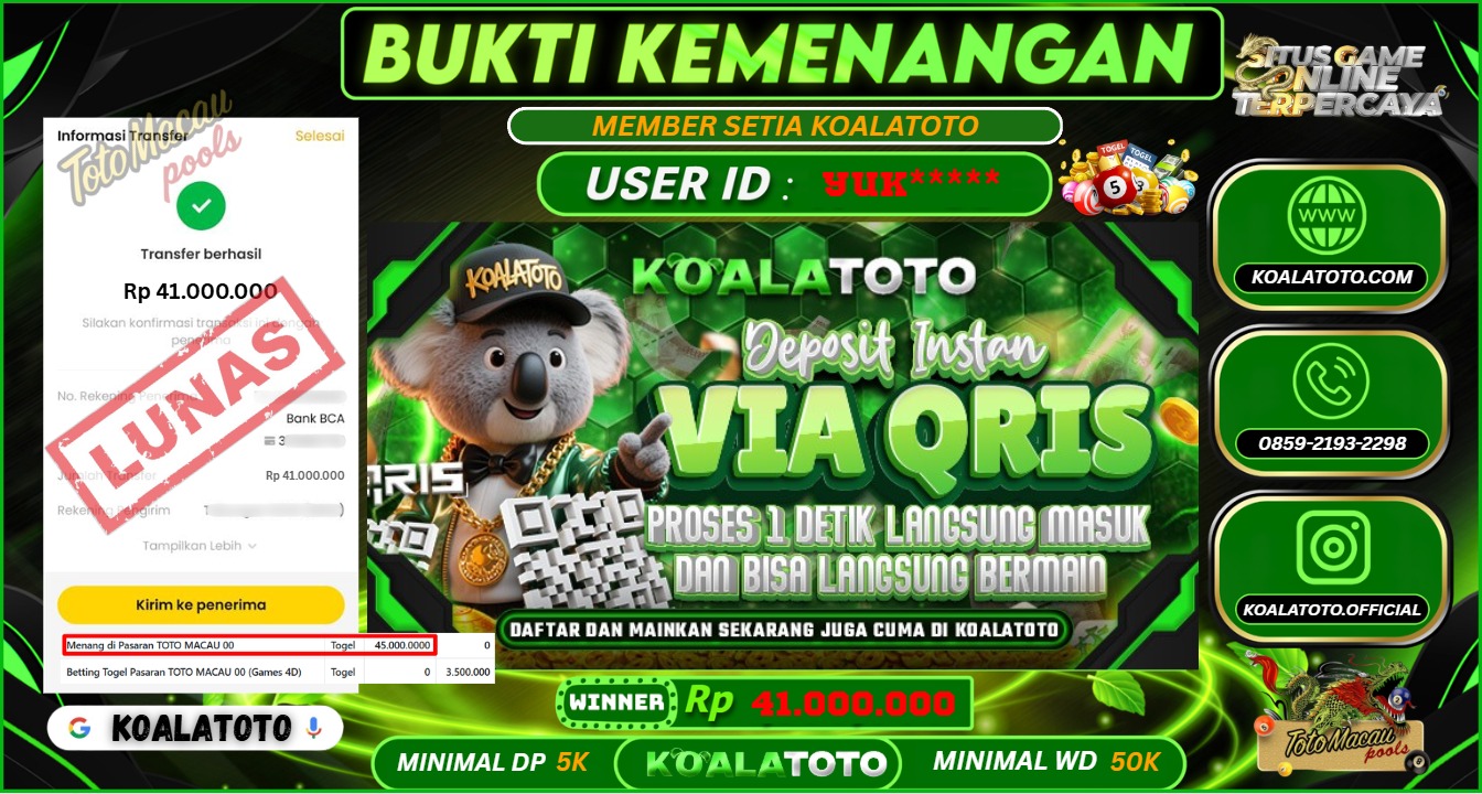 KOALATOTO JACKPOT TOGEL TOTO MACAU 00 || Rp.41.000.000.,- DI BAYAR LUNAS !!!