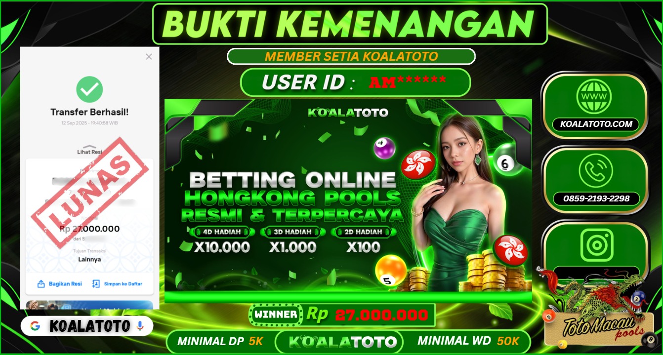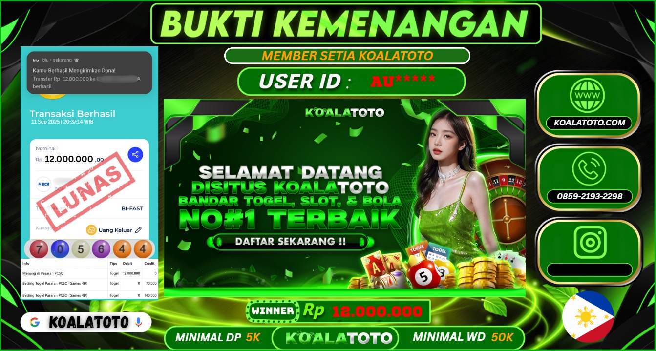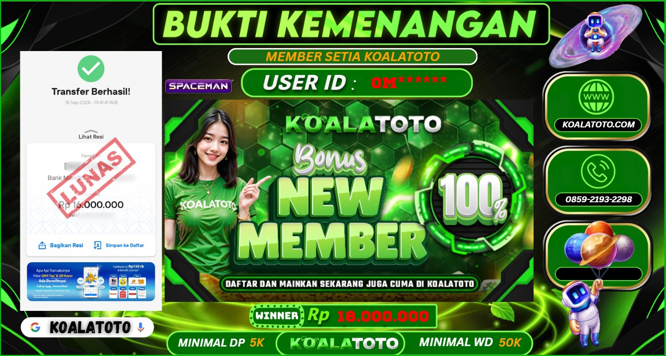 Selamat kepada USER ID : SEP***07 || Telah berhasil mendapatkan kemenangan pada Pasaran Togel TAIWAN POOLS Pihak KOALATOTO Mengucapkan Terima Kasih Kepada Pemenang karena Sudah Mempercayakan KOALATOTO sebagai Platform Situs Bandar Togel Online dan Slot Online Terpercaya & Terbesar yang Membayar Kemenangan Member berapapun itu tanpa ribet sampai LUNAS !!! Setelah mengisi FORMULIR WITHDRAW pihak KOALATOTO membutuhkan waktu sekitar 1-3 MENIT Untuk memproseskan Kemenangan Kalian Kami menegaskan bahwa KOALATOTO bukanlah Bandar Kaleng-Kaleng. Kami meyakinkan bahwa semua kemenangan akan dibayarkan Bergabunglah dengan KOALATOTO sekarang dan dapatkan kesempatan memenangkan Jackpot besar hanya di KOALATOTO !!!