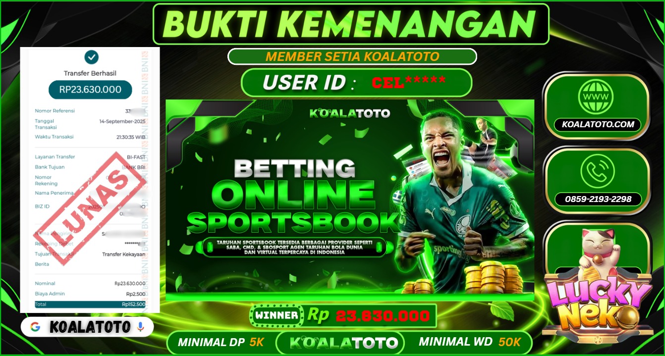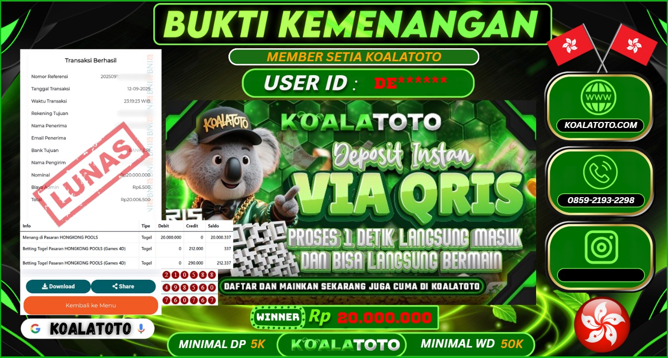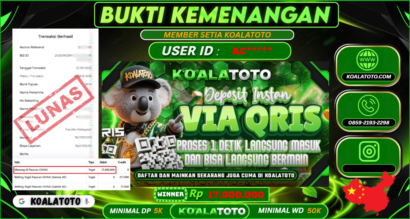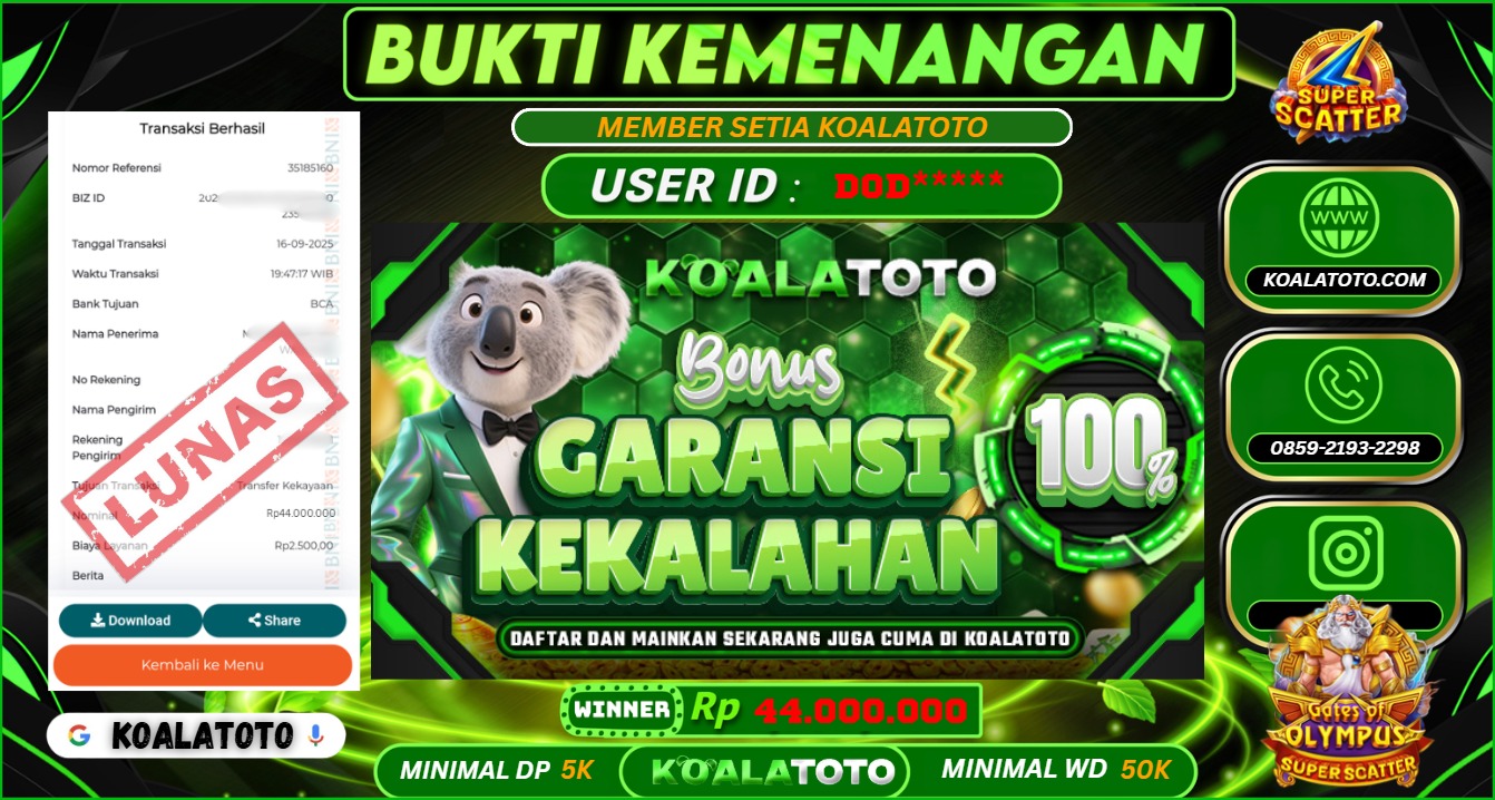Selamat kepada USER ID : SEP***07 || Telah berhasil mendapatkan kemenangan pada Pasaran Togel TAIWAN POOLS Pihak KOALATOTO Mengucapkan Terima Kasih Kepada Pemenang karena Sudah Mempercayakan KOALATOTO sebagai Platform Situs Bandar Togel Online dan Slot Online Terpercaya & Terbesar yang Membayar Kemenangan Member berapapun itu tanpa ribet sampai LUNAS !!! Setelah mengisi FORMULIR WITHDRAW pihak KOALATOTO membutuhkan waktu sekitar 1-3 MENIT Untuk memproseskan Kemenangan Kalian Kami menegaskan bahwa KOALATOTO bukanlah Bandar Kaleng-Kaleng. Kami meyakinkan bahwa semua kemenangan akan dibayarkan Bergabunglah dengan KOALATOTO sekarang dan dapatkan kesempatan memenangkan Jackpot besar hanya di KOALATOTO !!!