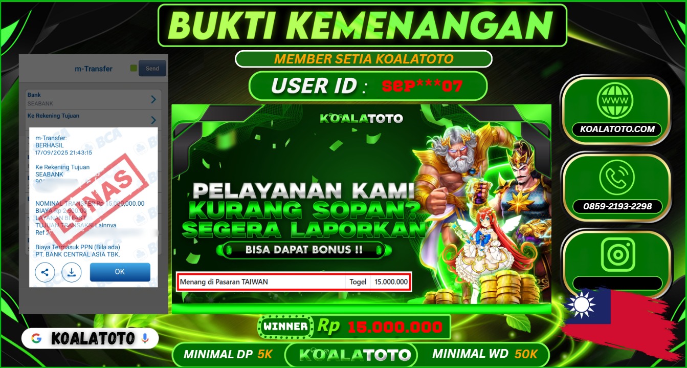 KOALATOTO JACKPOT TOGEL TAIWAN POOLS || Rp.15.000.000.,- DI BAYAR LUNAS !!!