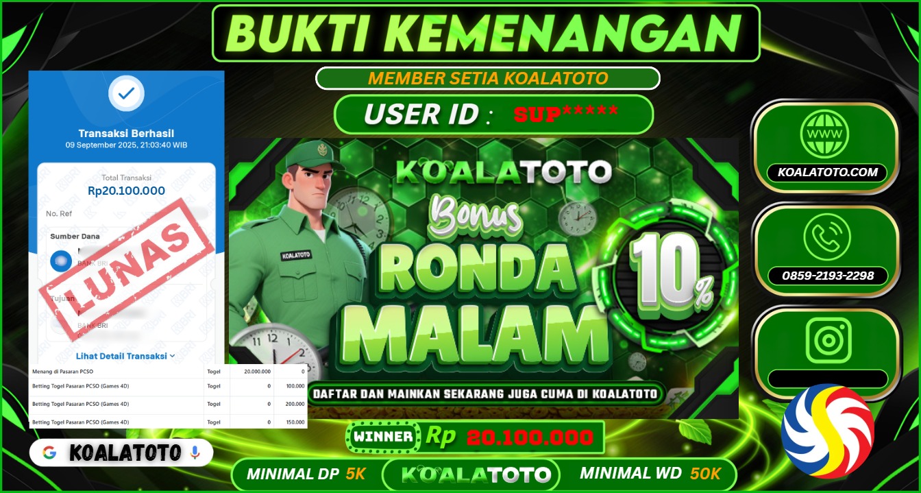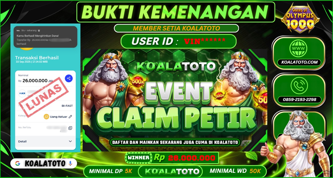 Selamat kepada USER ID : VIN***** || Telah berhasil mendapatkan kemenangan pada SLOT GATES OF OLYMPUS 1000 Pihak KOALATOTO Mengucapkan Terima Kasih Kepada Pemenang karena Sudah Mempercayakan KOALATOTO sebagai Platform Situs Bandar Togel Online dan Slot Online Terpercaya & Terbesar yang Membayar Kemenangan Member berapapun itu tanpa ribet sampai LUNAS !!! Setelah mengisi FORMULIR WITHDRAW pihak KOALATOTO membutuhkan waktu sekitar 1-3 MENIT Untuk memproseskan Kemenangan Kalian Kami menegaskan bahwa KOALATOTO bukanlah Bandar Kaleng-Kaleng. Kami meyakinkan bahwa semua kemenangan akan dibayarkan Bergabunglah dengan KOALATOTO sekarang dan dapatkan kesempatan memenangkan Jackpot besar hanya di KOALATOTO !!!