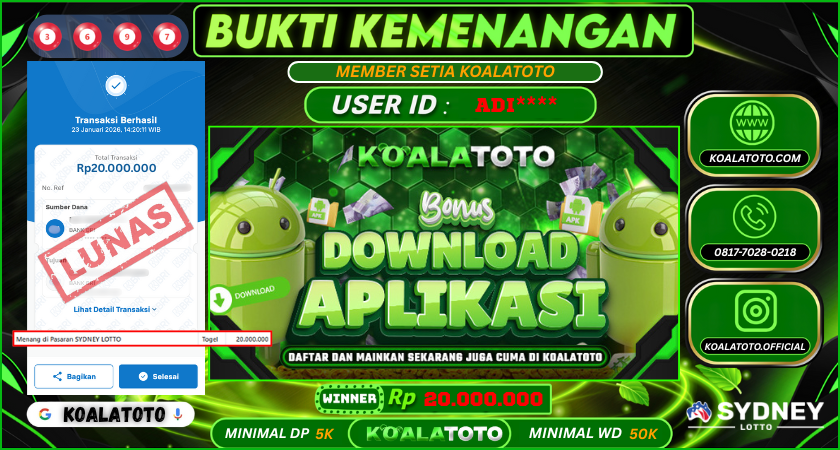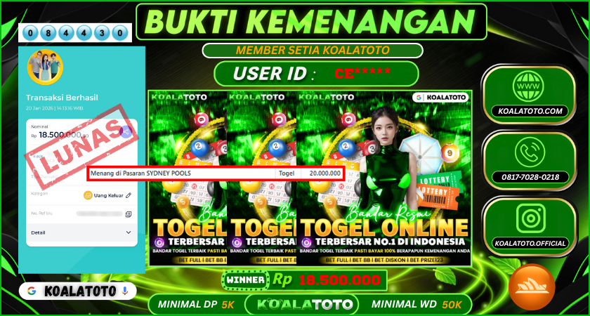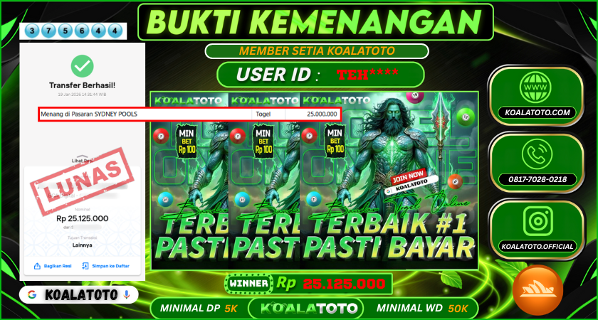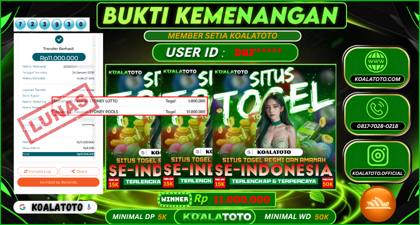 KOALATOTO JACKPOT TOGEL SYDNEY POOLS || Rp.11.000.000.,- DI BAYAR LUNAS !!!