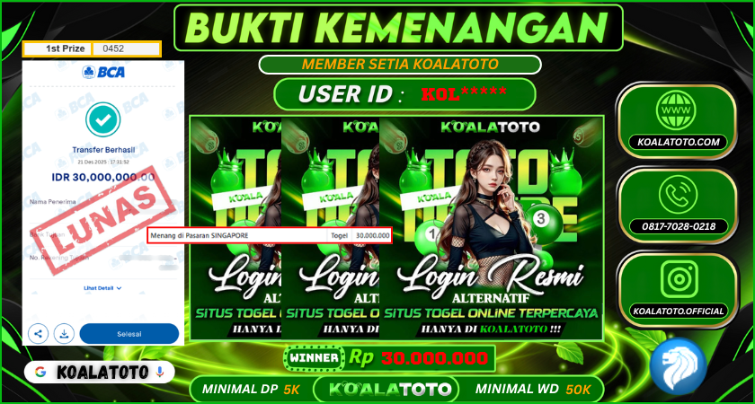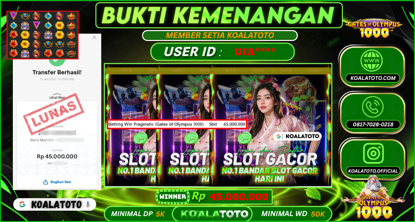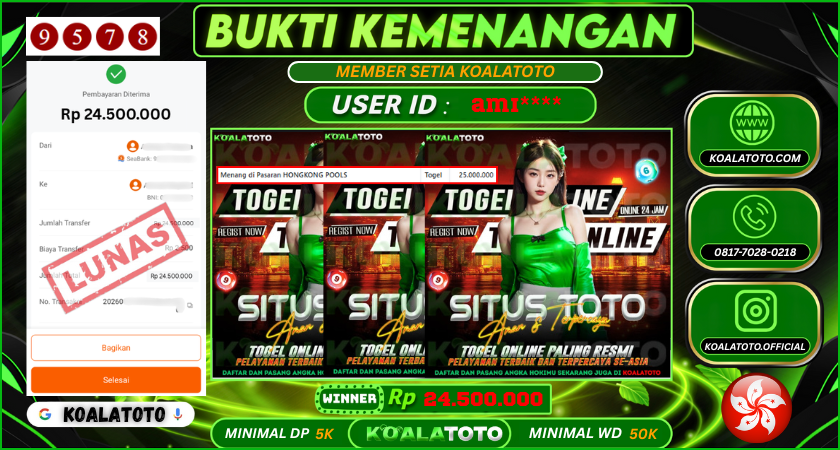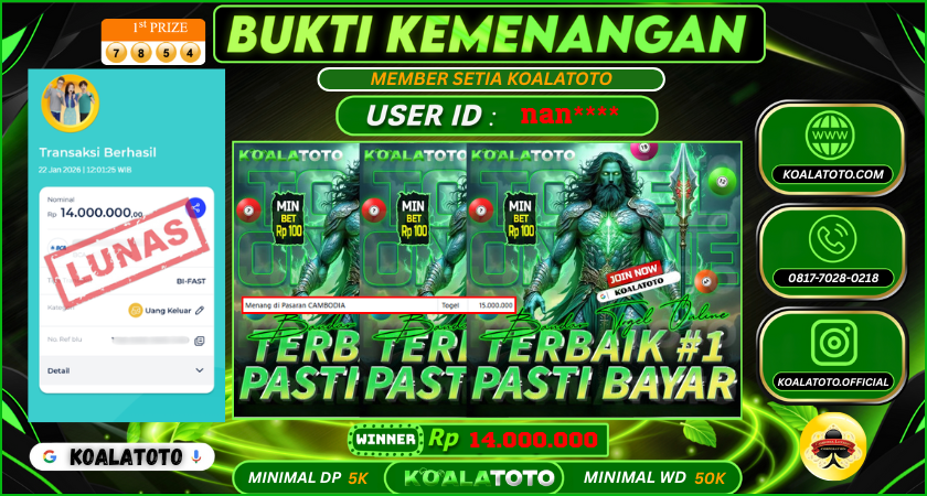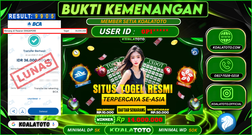 Selamat kepada USER ID : Daf**** || Telah berhasil mendapatkan kemenangan pada Pasaran TOGEL SYDNEY POOLS Pihak KOALATOTO Mengucapkan Terima Kasih Kepada Pemenang karena Sudah Mempercayakan KOALATOTO sebagai Platform Situs Bandar Togel Online dan Slot Online Terpercaya & Terbesar yang Membayar Kemenangan Member berapapun itu tanpa ribet sampai LUNAS !!! Setelah mengisi FORMULIR WITHDRAW pihak KOALATOTO membutuhkan waktu sekitar 1-3 MENIT Untuk memproseskan Kemenangan Kalian Kami menegaskan bahwa KOALATOTO bukanlah Bandar Kaleng-Kaleng. Kami meyakinkan bahwa semua kemenangan akan dibayarkan Bergabunglah dengan KOALATOTO sekarang dan dapatkan kesempatan memenangkan Jackpot besar hanya di KOALATOTO !!!
