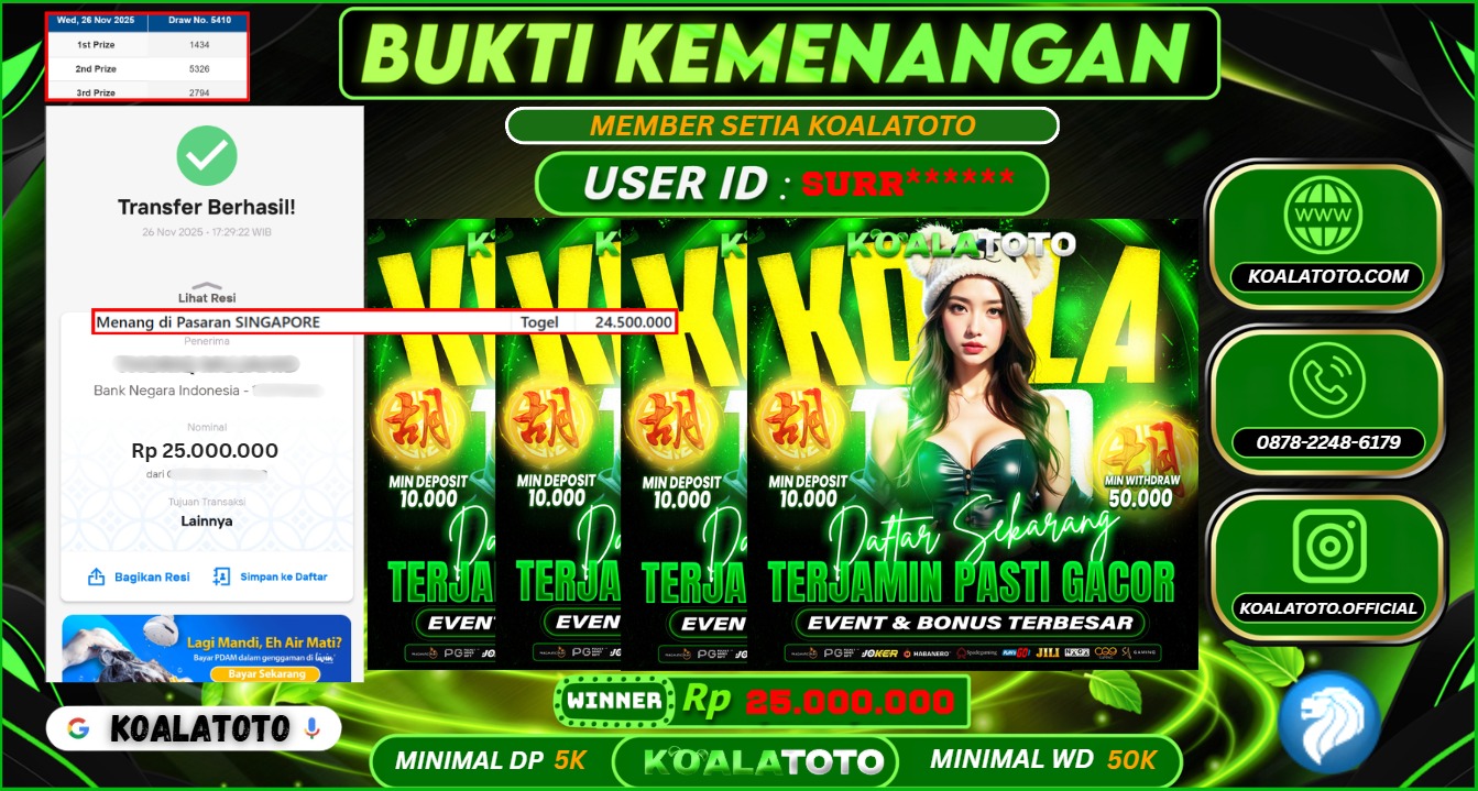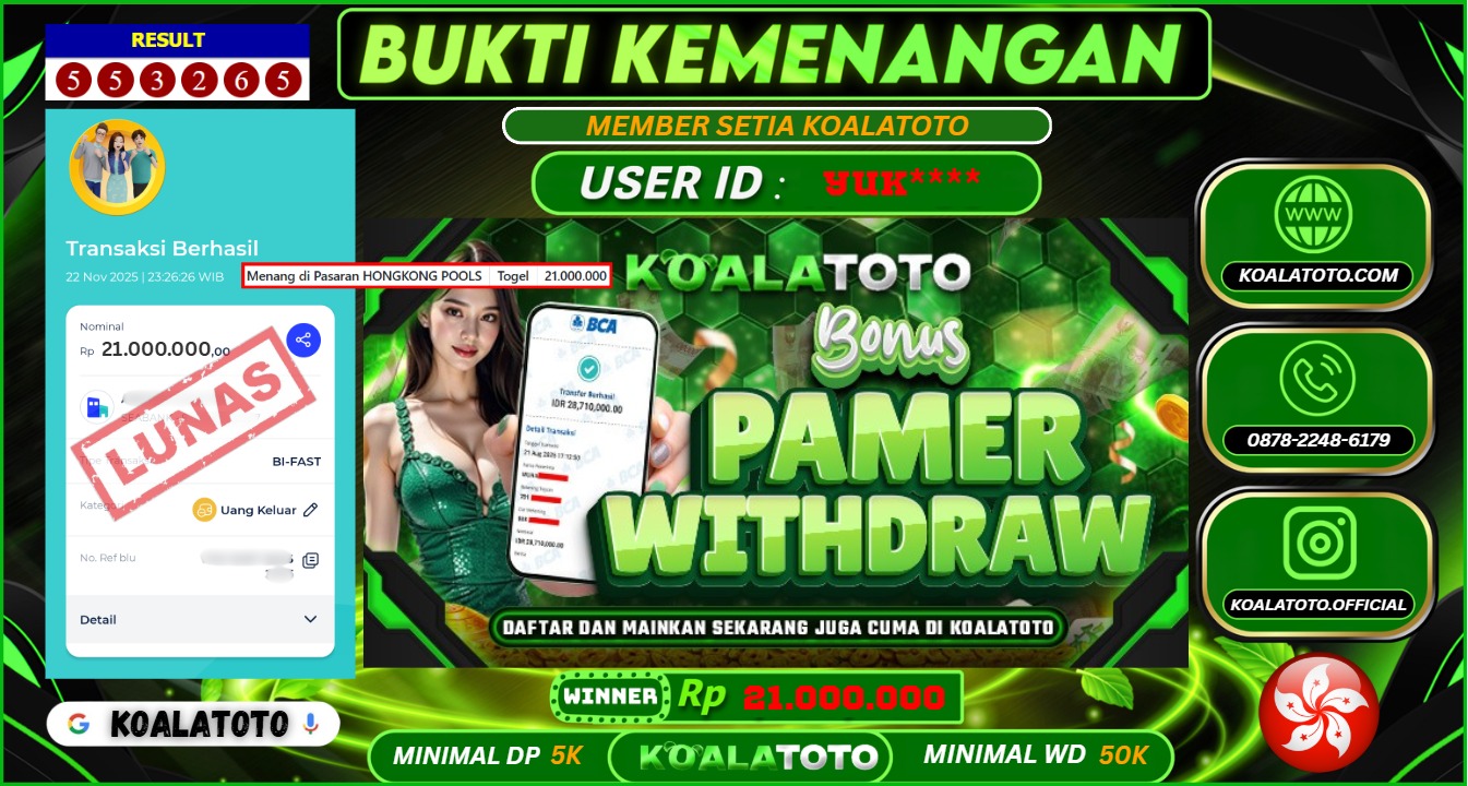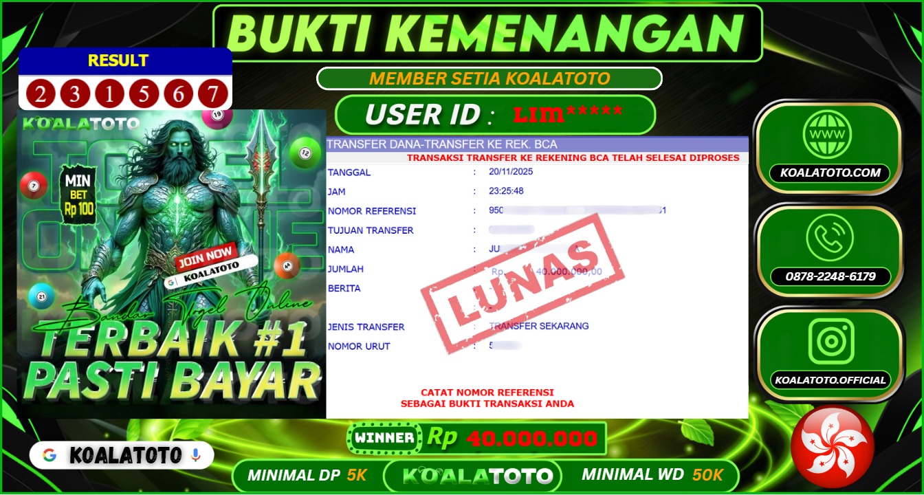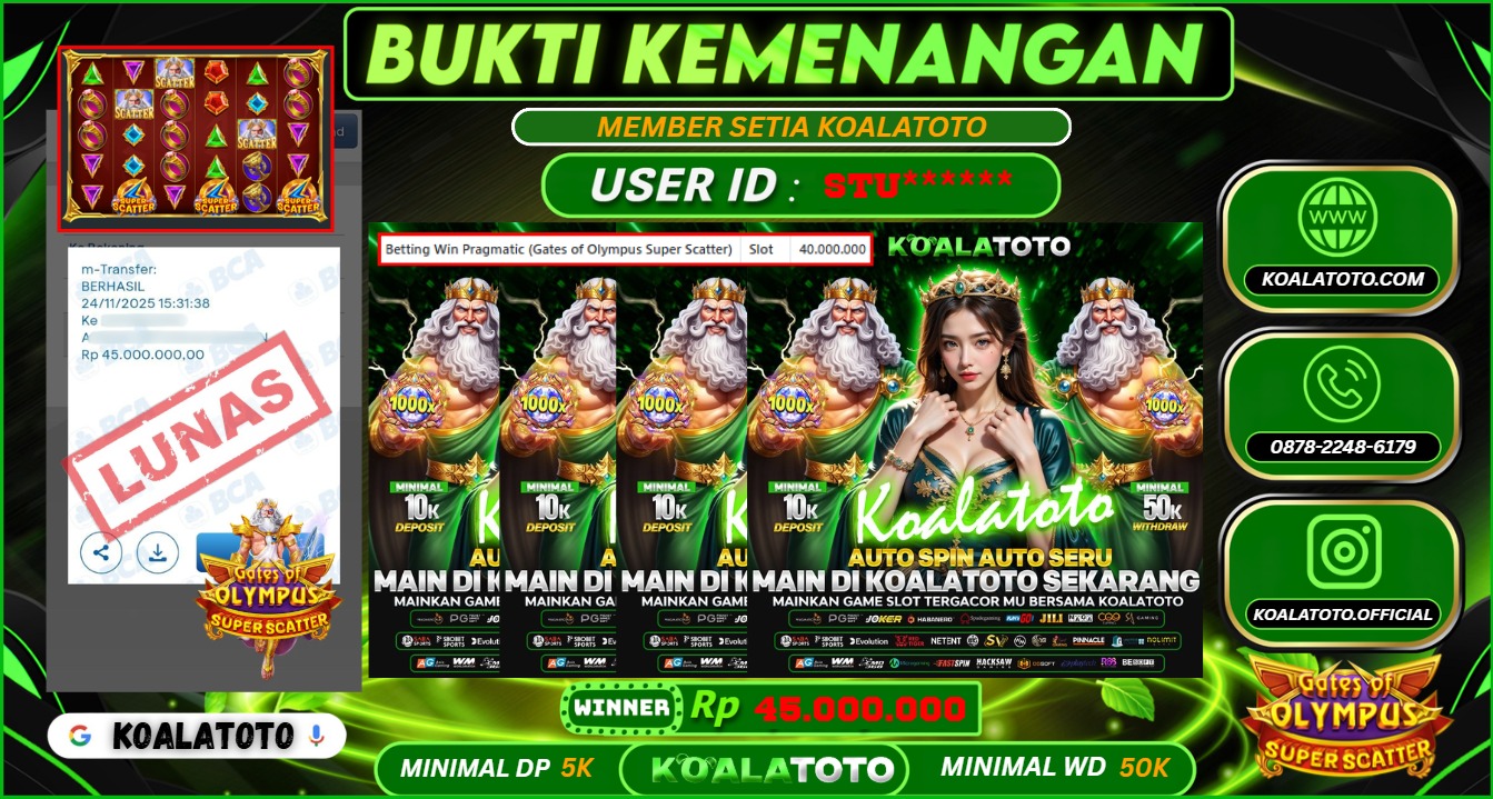 Selamat kepada USER ID : Abc*** || Telah berhasil mendapatkan kemenangan pada Pasaran TOGEL SYDNEY POOLS Pihak KOALATOTO Mengucapkan Terima Kasih Kepada Pemenang karena Sudah Mempercayakan KOALATOTO sebagai Platform Situs Bandar Togel Online dan Slot Online Terpercaya & Terbesar yang Membayar Kemenangan Member berapapun itu tanpa ribet sampai LUNAS !!! Setelah mengisi FORMULIR WITHDRAW pihak KOALATOTO membutuhkan waktu sekitar 1-3 MENIT Untuk memproseskan Kemenangan Kalian Kami menegaskan bahwa KOALATOTO bukanlah Bandar Kaleng-Kaleng. Kami meyakinkan bahwa semua kemenangan akan dibayarkan Bergabunglah dengan KOALATOTO sekarang dan dapatkan kesempatan memenangkan Jackpot besar hanya di KOALATOTO !!!