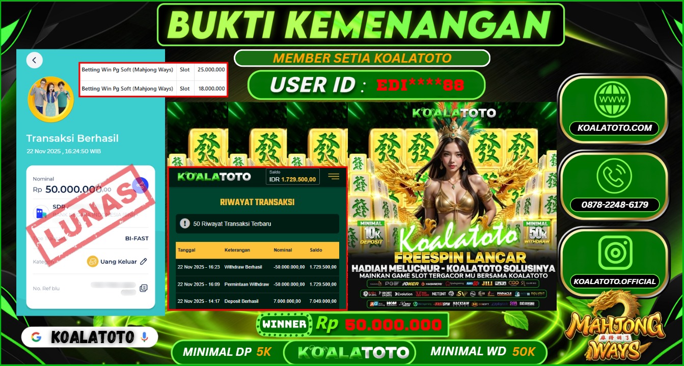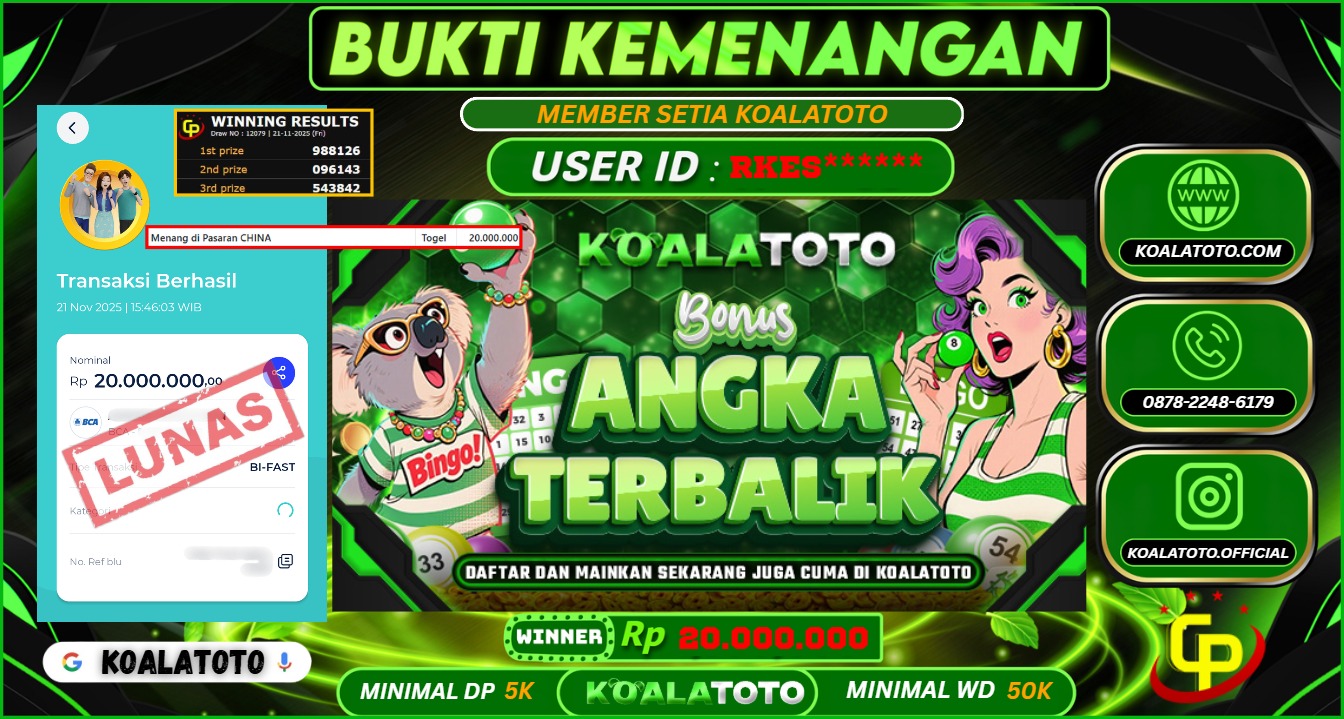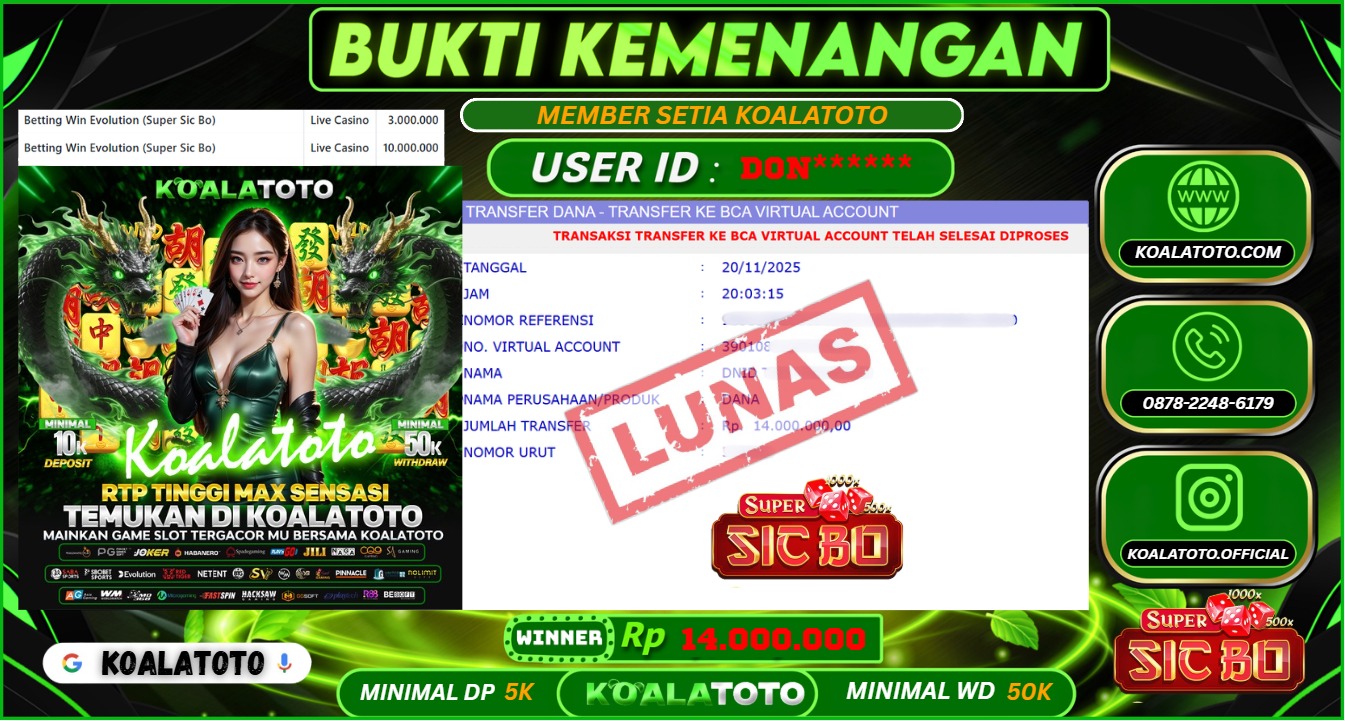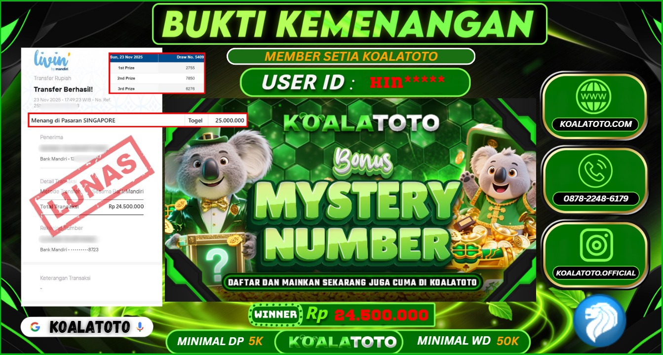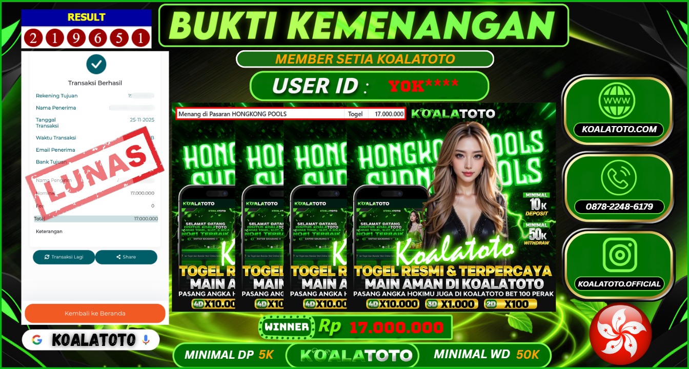 Selamat kepada USER ID : Abc*** || Telah berhasil mendapatkan kemenangan pada Pasaran TOGEL SYDNEY POOLS Pihak KOALATOTO Mengucapkan Terima Kasih Kepada Pemenang karena Sudah Mempercayakan KOALATOTO sebagai Platform Situs Bandar Togel Online dan Slot Online Terpercaya & Terbesar yang Membayar Kemenangan Member berapapun itu tanpa ribet sampai LUNAS !!! Setelah mengisi FORMULIR WITHDRAW pihak KOALATOTO membutuhkan waktu sekitar 1-3 MENIT Untuk memproseskan Kemenangan Kalian Kami menegaskan bahwa KOALATOTO bukanlah Bandar Kaleng-Kaleng. Kami meyakinkan bahwa semua kemenangan akan dibayarkan Bergabunglah dengan KOALATOTO sekarang dan dapatkan kesempatan memenangkan Jackpot besar hanya di KOALATOTO !!!