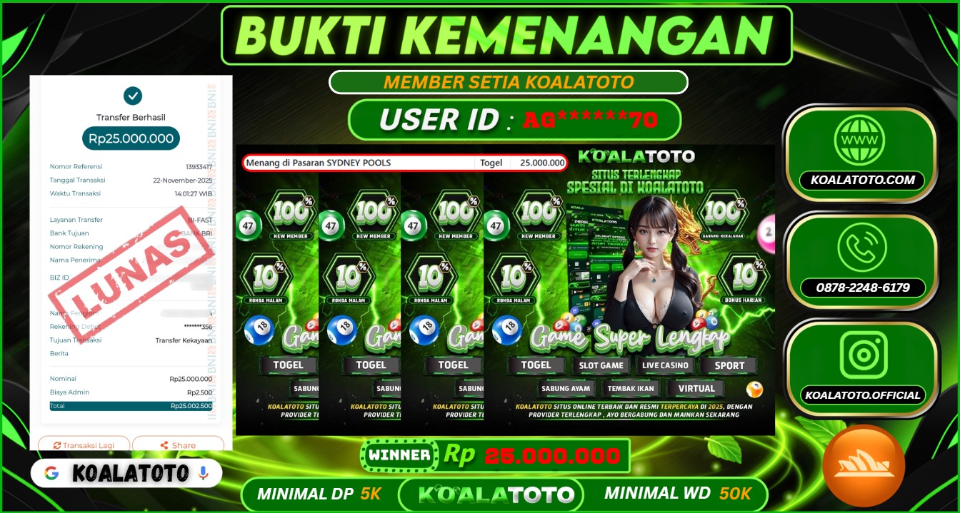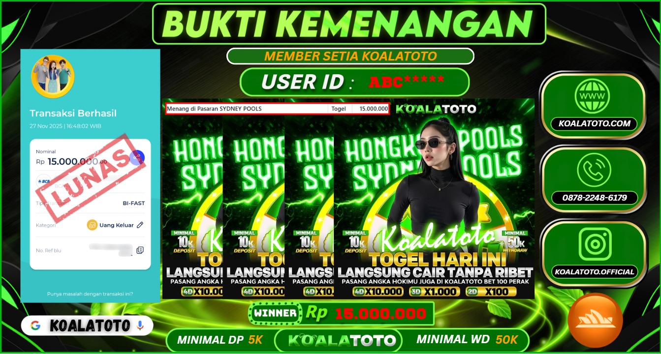 KOALATOTO JACKPOT TOGEL SYDNEY POOLS || Rp.15.000.000.,- DI BAYAR LUNAS !!!