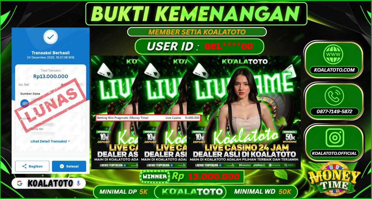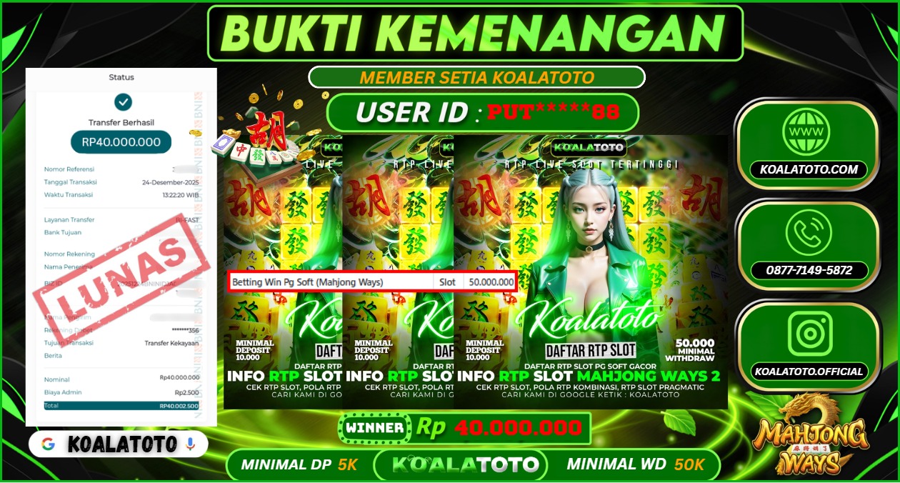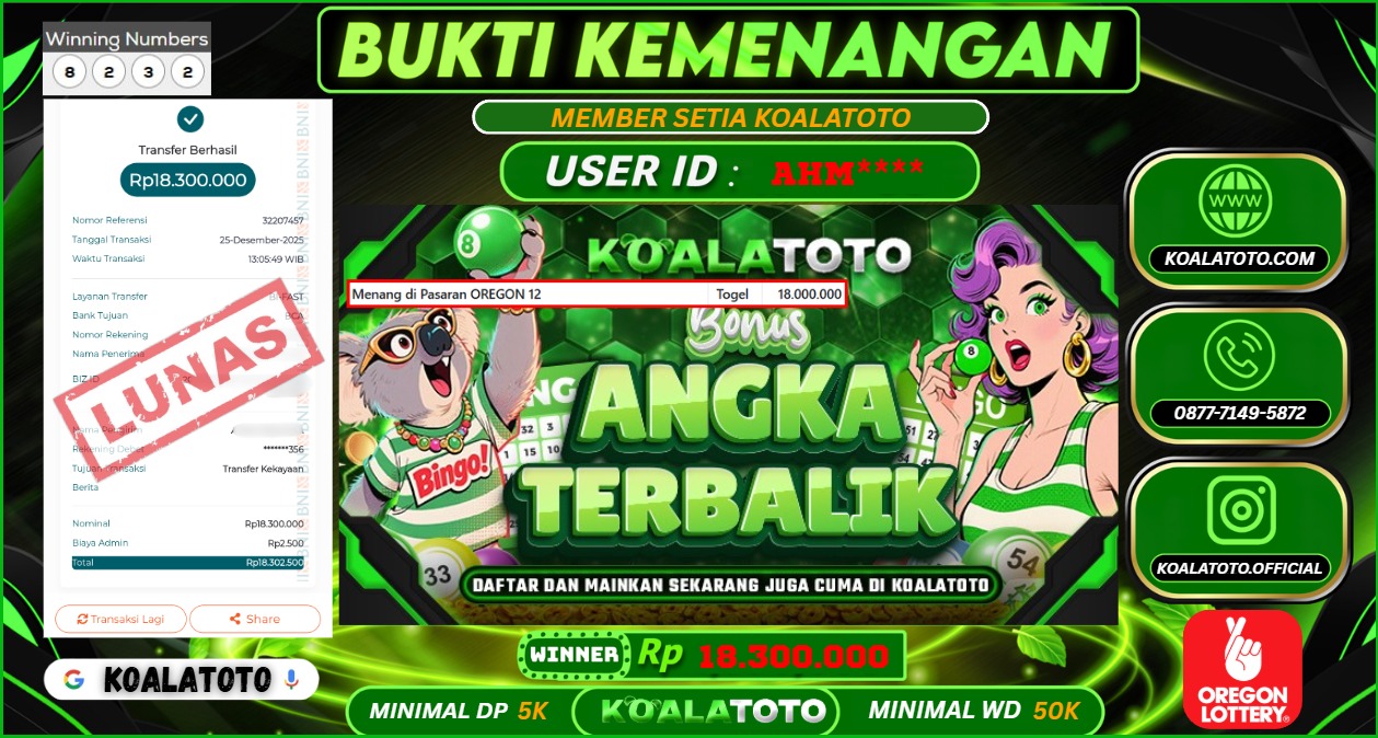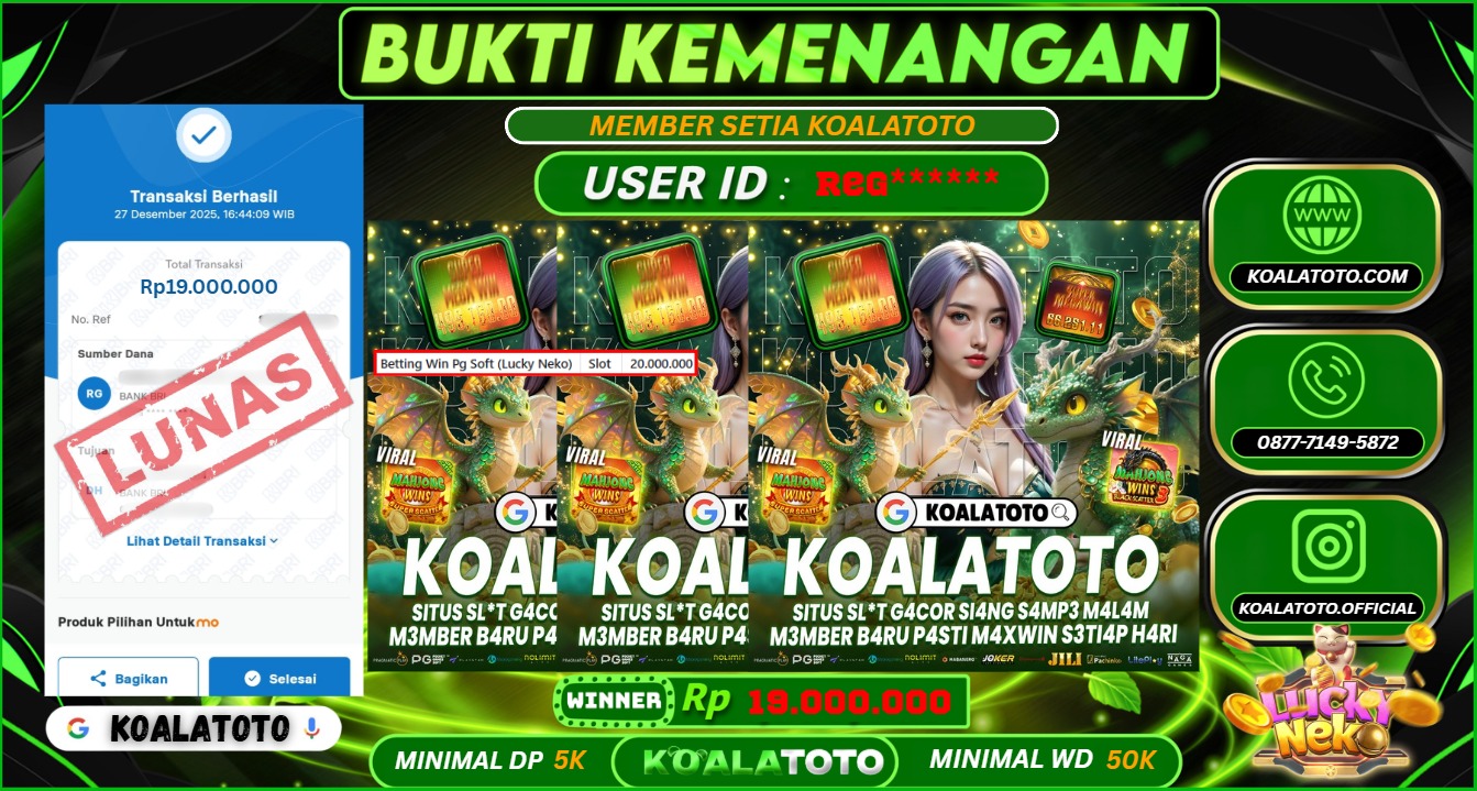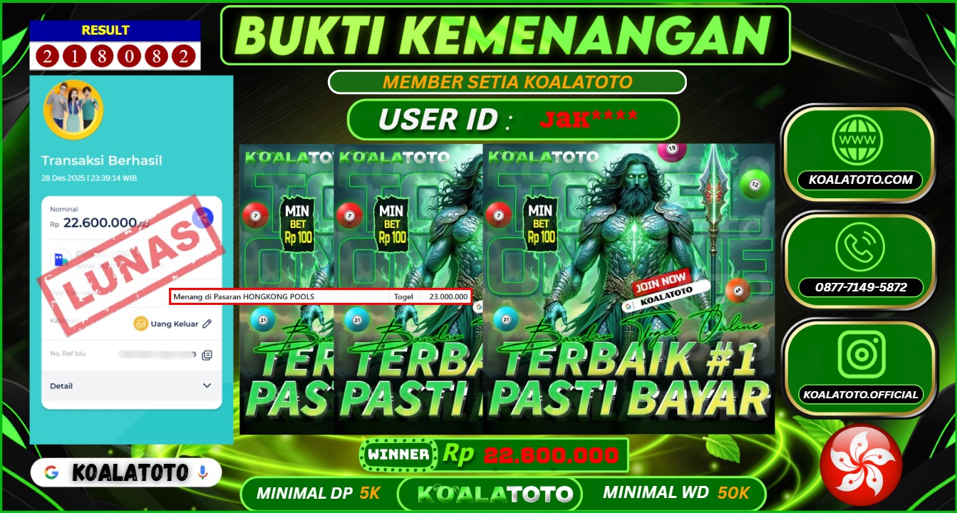 Selamat kepada USER ID : ALH**** || Telah berhasil mendapatkan kemenangan pada Pasaran TOGEL SYDNEY POOLS Pihak KOALATOTO Mengucapkan Terima Kasih Kepada Pemenang karena Sudah Mempercayakan KOALATOTO sebagai Platform Situs Bandar Togel Online dan Slot Online Terpercaya & Terbesar yang Membayar Kemenangan Member berapapun itu tanpa ribet sampai LUNAS !!! Setelah mengisi FORMULIR WITHDRAW pihak KOALATOTO membutuhkan waktu sekitar 1-3 MENIT Untuk memproseskan Kemenangan Kalian Kami menegaskan bahwa KOALATOTO bukanlah Bandar Kaleng-Kaleng. Kami meyakinkan bahwa semua kemenangan akan dibayarkan Bergabunglah dengan KOALATOTO sekarang dan dapatkan kesempatan memenangkan Jackpot besar hanya di KOALATOTO !!!