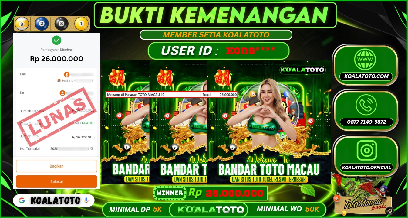 KOALATOTO JACKPOT TOTO MACAU 19 || Rp.26.000.000.,- DI BAYAR LUNAS !!!