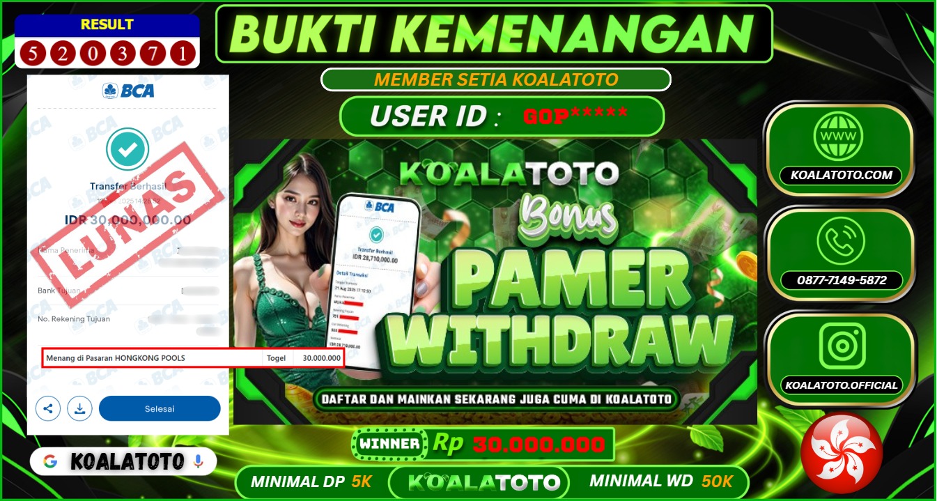 KOALATOTO JACKPOT TOGEL HONGKONG POOLS || Rp.30.000.000.,- DI BAYAR LUNAS !!!