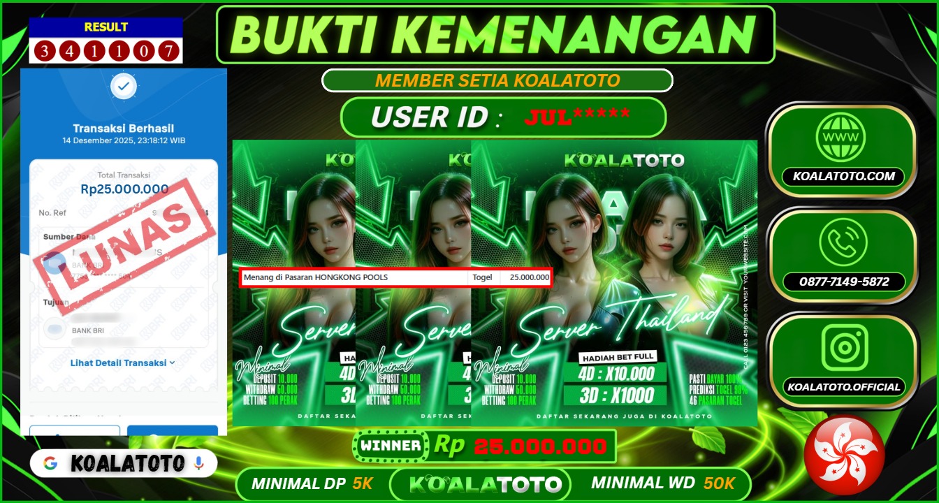 KOALATOTO JACKPOT TOGEL HONGKONG POOLS || Rp.25.000.000.,- DI BAYAR LUNAS !!!