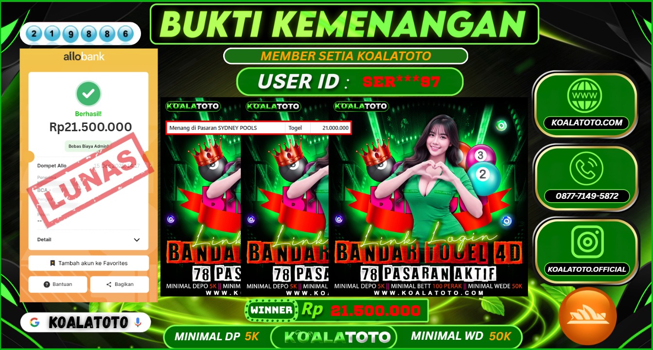 KOALATOTO JACKPOT TOGEL SYDNEY POOLS || Rp.21.500.000.,- DI BAYAR LUNAS !!!
