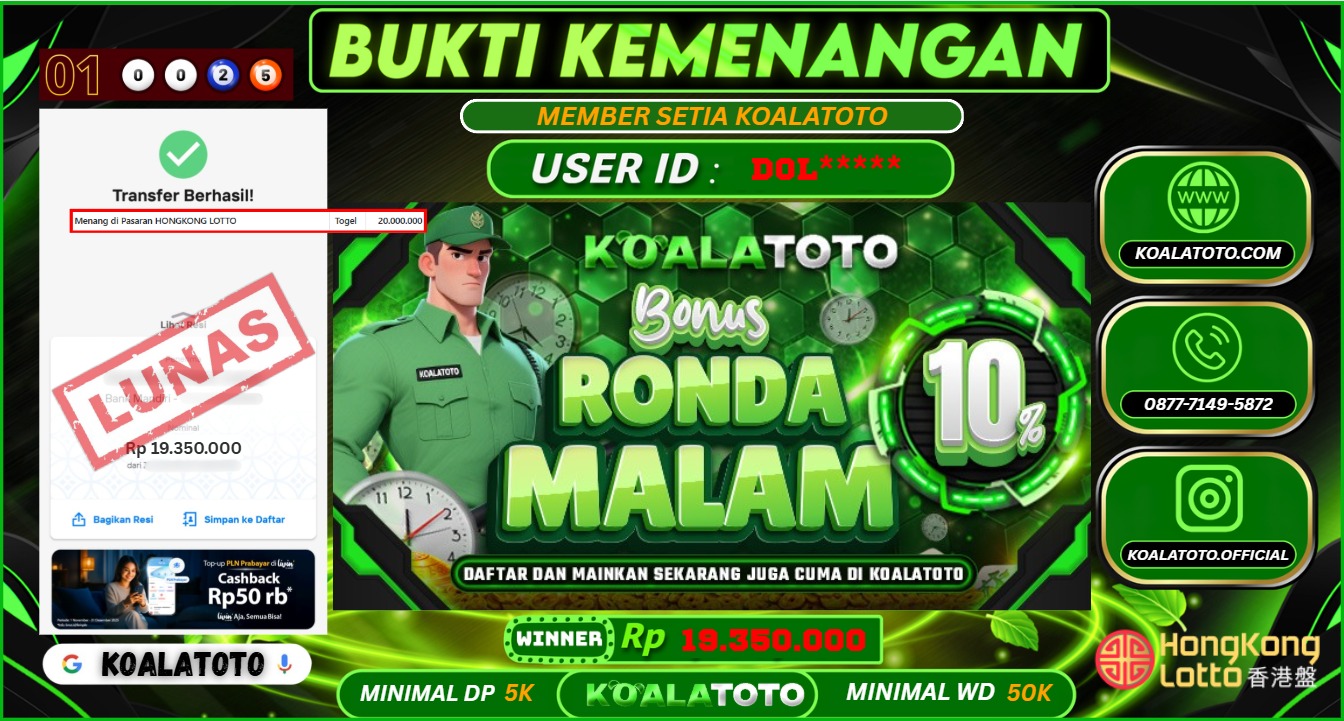 KOALATOTO JACKPOT TOGEL HONGKONG LOTTO || Rp.19.350.000.,- DI BAYAR LUNAS !!!