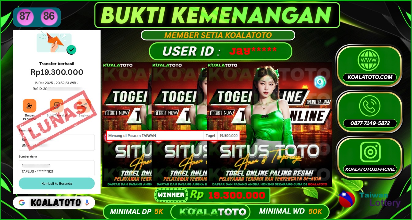 KOALATOTO JACKPOT TOGEL TAIWAN POOLS || Rp.19.300.000.,- DI BAYAR LUNAS !!!