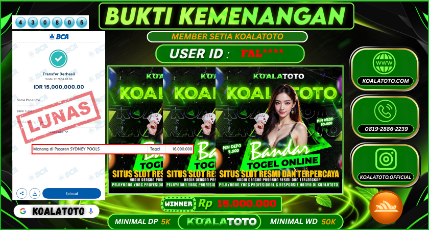KOALATOTO JACKPOT TOGEL SYDNEY POOLS || Rp.15.000.000.,- DI BAYAR LUNAS !!!