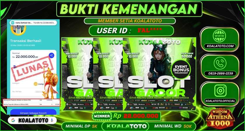 Selamat kepada USER ID : Fal**** || Telah berhasil mendapatkan kemenangan pada Game SLOT WISDOM OF ATHENA 1000 Pihak KOALATOTO Mengucapkan Terima Kasih Kepada Pemenang karena Sudah Mempercayakan KOALATOTO sebagai Platform Situs Bandar Togel Online dan Slot Online Terpercaya & Terbesar yang Membayar Kemenangan Member berapapun itu tanpa ribet sampai LUNAS !!! Setelah mengisi FORMULIR WITHDRAW pihak KOALATOTO membutuhkan waktu sekitar 1-3 MENIT Untuk memproseskan Kemenangan Kalian Kami menegaskan bahwa KOALATOTO bukanlah Bandar Kaleng-Kaleng. Kami meyakinkan bahwa semua kemenangan akan dibayarkan Bergabunglah dengan KOALATOTO sekarang dan dapatkan kesempatan memenangkan Jackpot besar hanya di KOALATOTO !!!